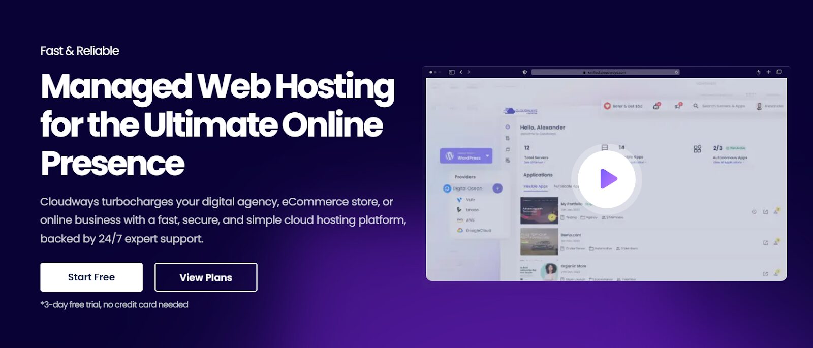 It also provides access to major cloud providers such as DigitalOcean, AWS, and Google Cloud, along with built-in security features like firewalls and automated backups to help protect your data.