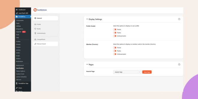 The BuddyBoss Gamification plugin allows you to reward community members with points, badges, ranks, and achievements for their engagement and activity across your platform.
