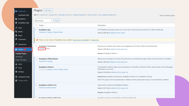 Activate the BuddyBoss Gamification Plugin