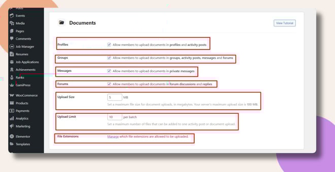 - Scroll to the Documents section in Media Settings.