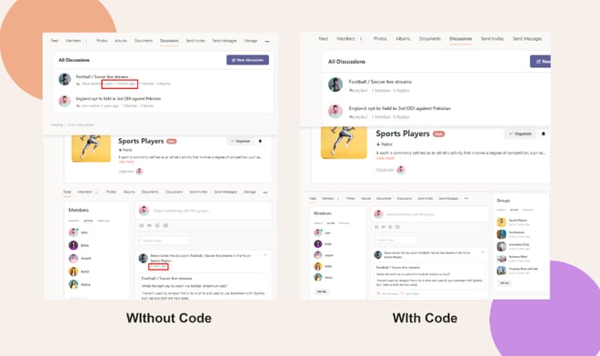BuddyBoss doesn’t offer a built-in setting to hide the timestamps next to group feed posts or forum replies. If you prefer a cleaner look without dates, you can apply a simple CSS snippet via Theme Options.