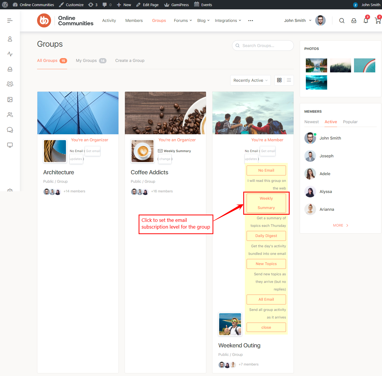 The BuddyPress Group Email Subscription plugin allows users to receive email notifications of group activities – Weekly or daily digests.