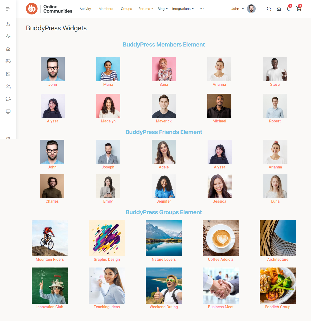 The BuddyBoss Theme styles the widgets on posts and pages seamlessly without breaking your site.