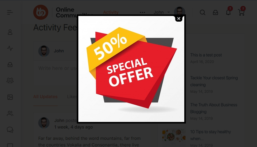 The BuddyBoss Theme styles the pop-ups seamlessly.