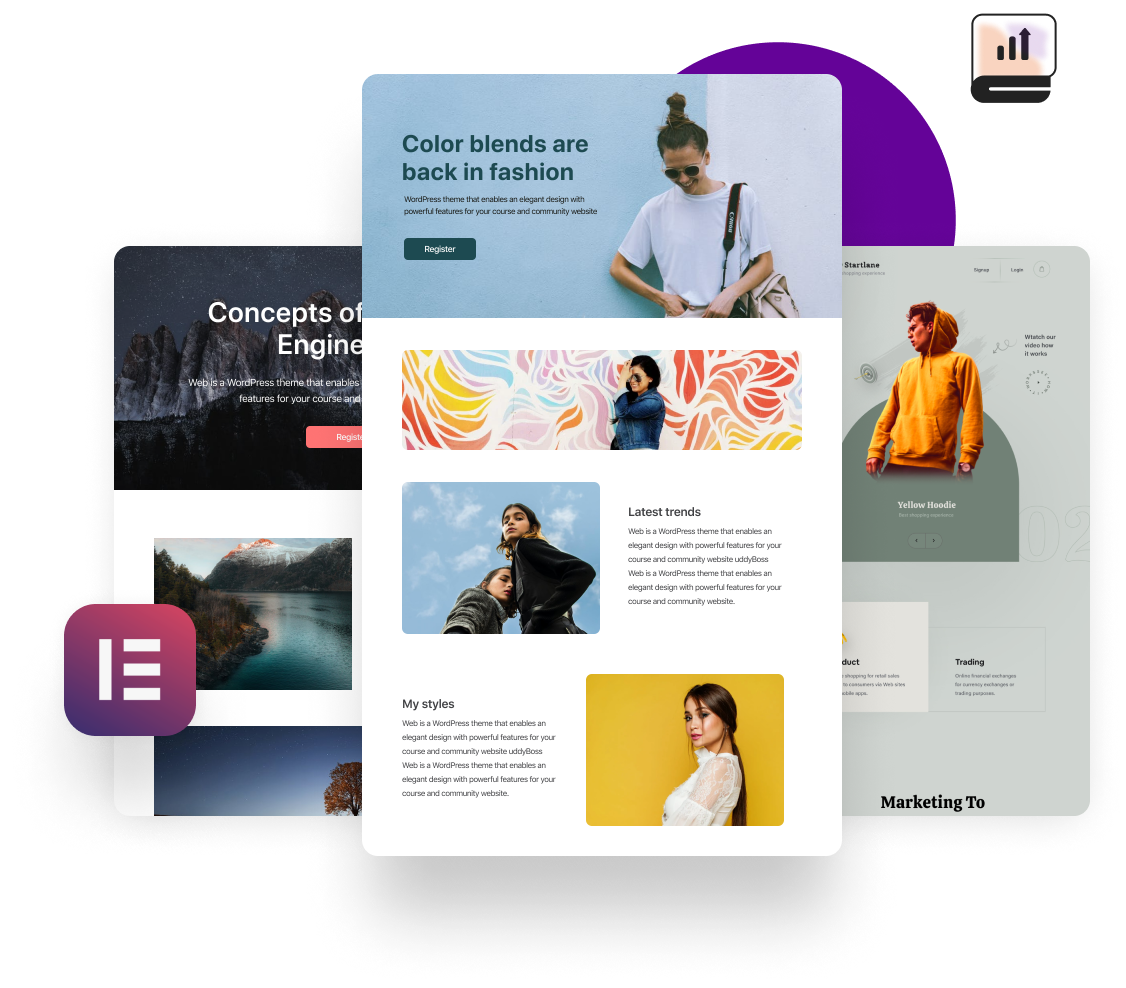 Build beautiful content pages using pre-built Elementor sections that allow full customization without touching a line of code.