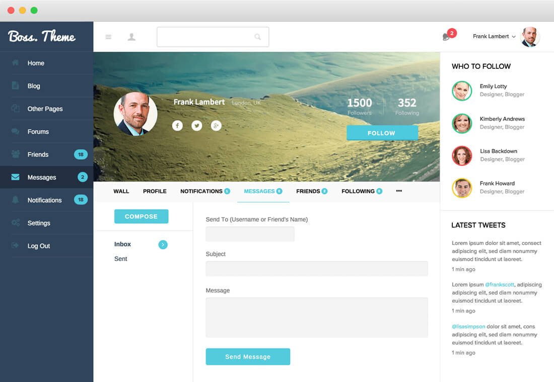 Boss is a responsive WordPress/BuddyPress theme that provides a whole new way of visualizing BuddyPress.
