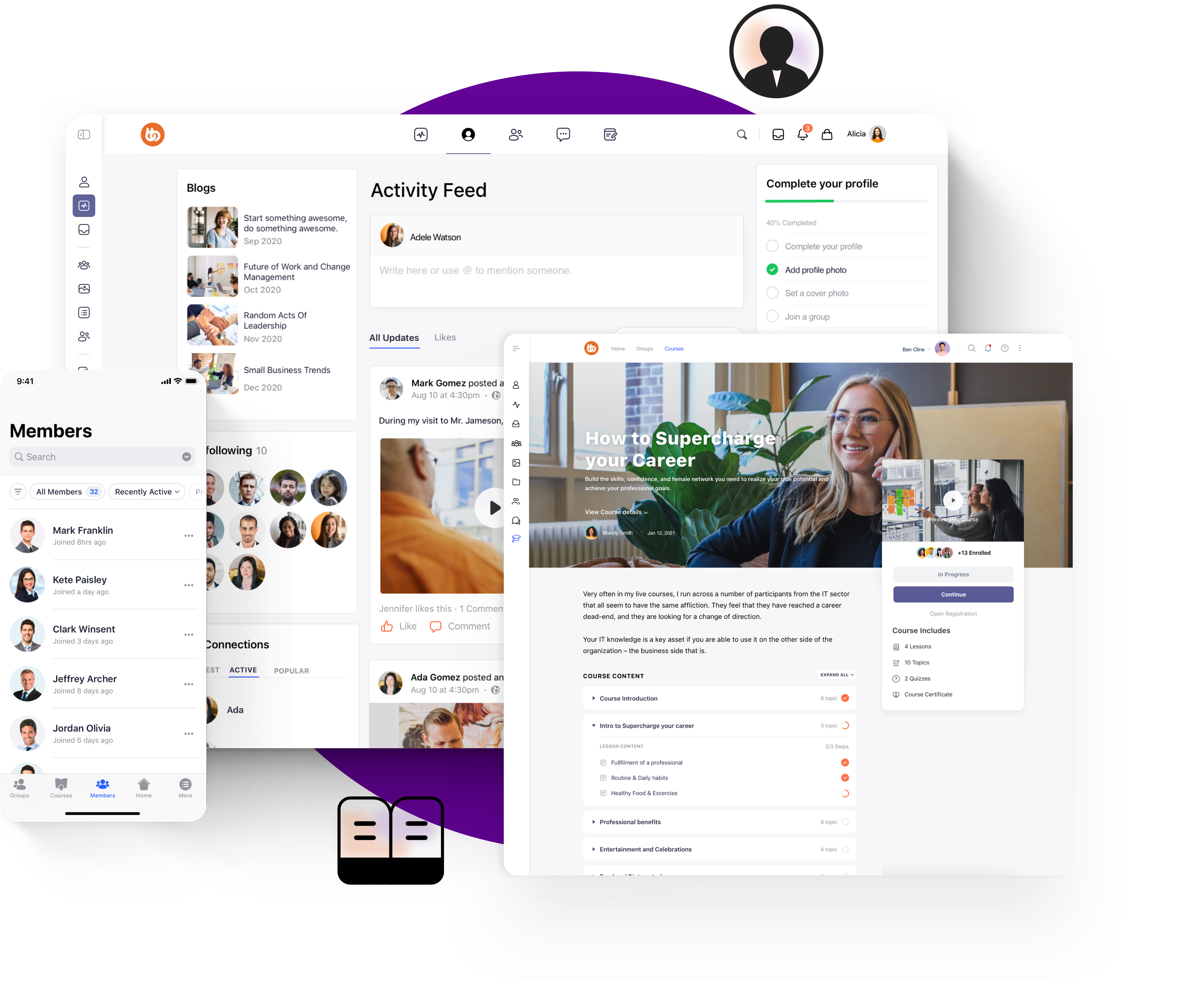 Synchronize your course or community to a native iOS and Android app. BuddyBoss App is packed with everything you need to create premium mobile learning and social networking apps for your audience.