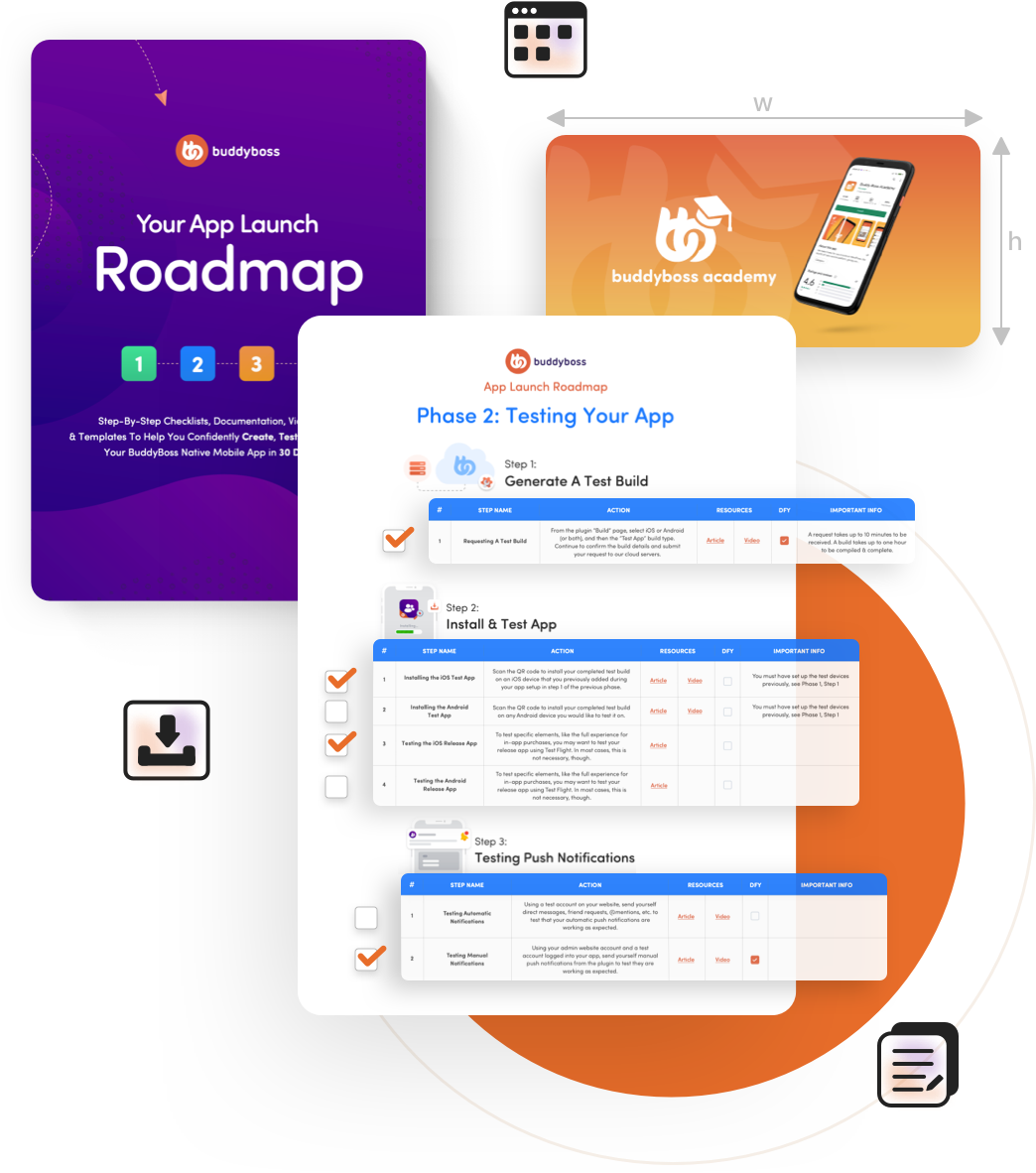 Access a library of templates and downloadable resources as well as easy-to-follow checklists for each step of your App Launch Journey™, giving you just what you need when you need it.