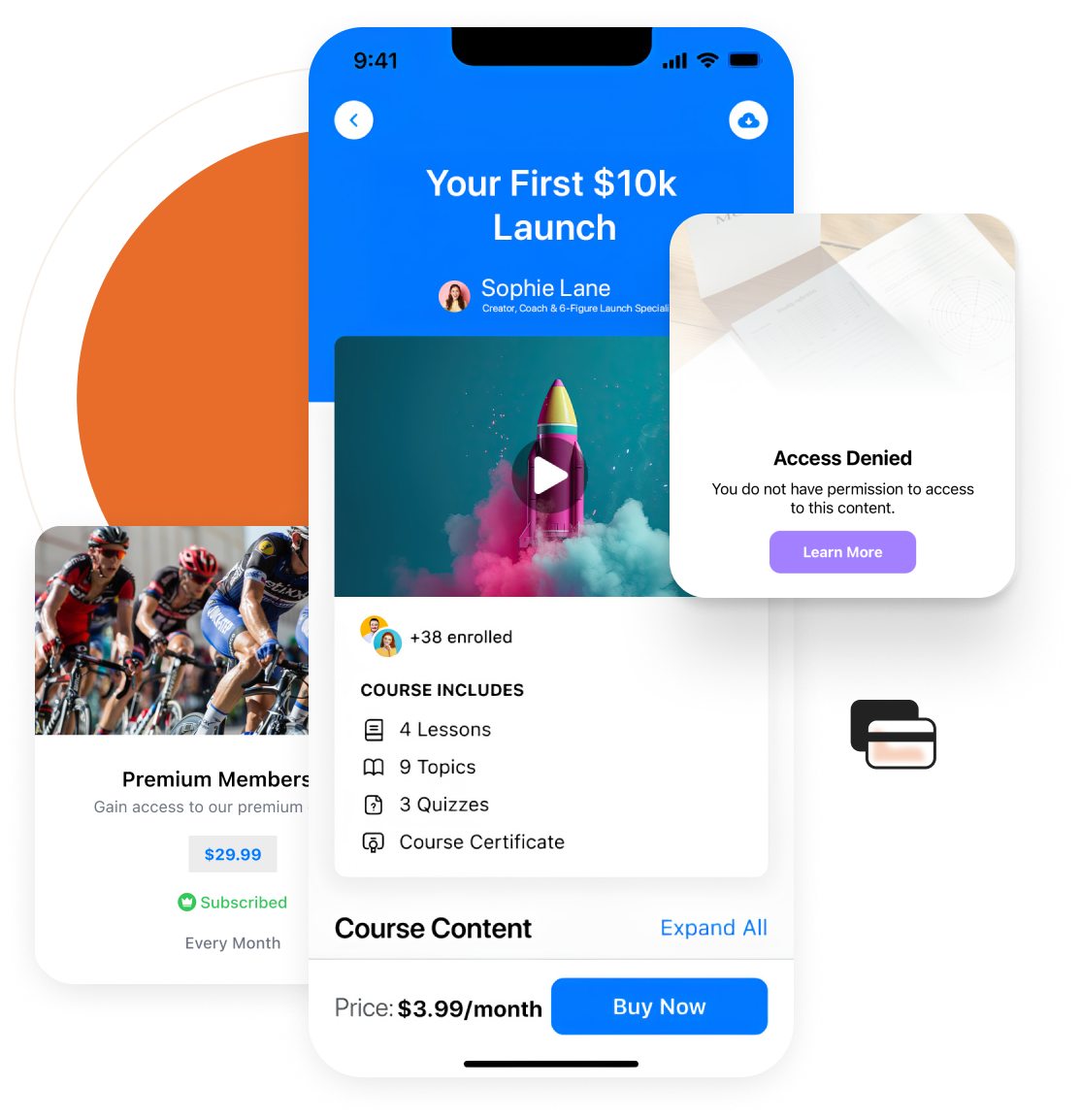 Increase your student lifetime value by upselling a membership or subscription in-app.