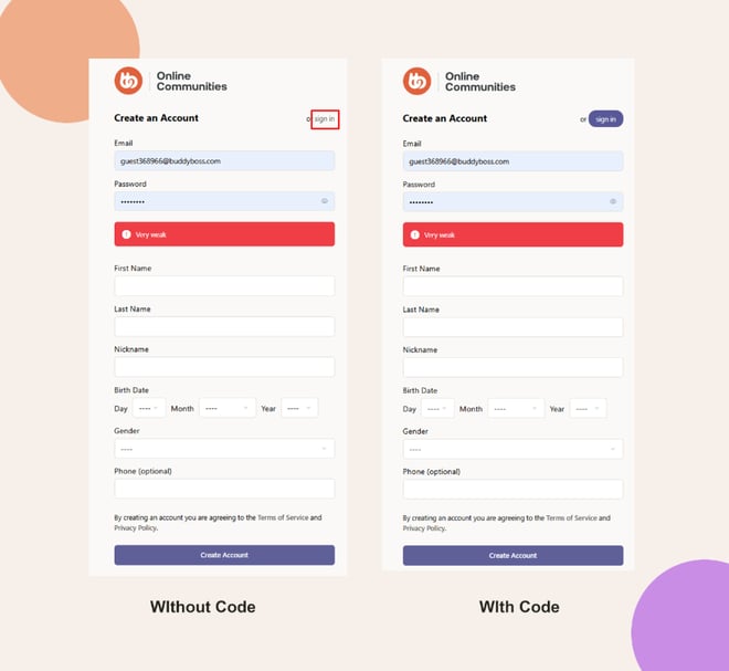 The default Registration screen doesn’t style the “Sign In” link as a button. You can wrap it in a colored rectangle with rounded corners by adding a bit of custom CSS.