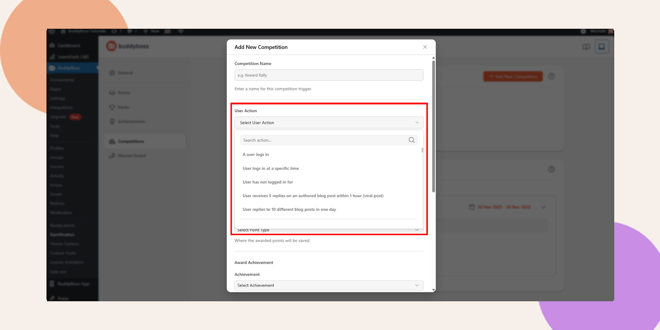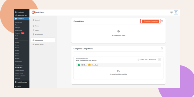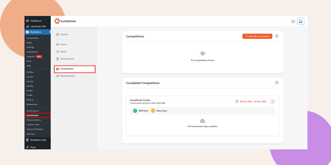 BuddyBoss Competitions allow you to create time-based challenges that reward members for completing specific actions on your platform. This feature helps boost engagement, encourage repeat activity, and make your community experience more interactive and fun.