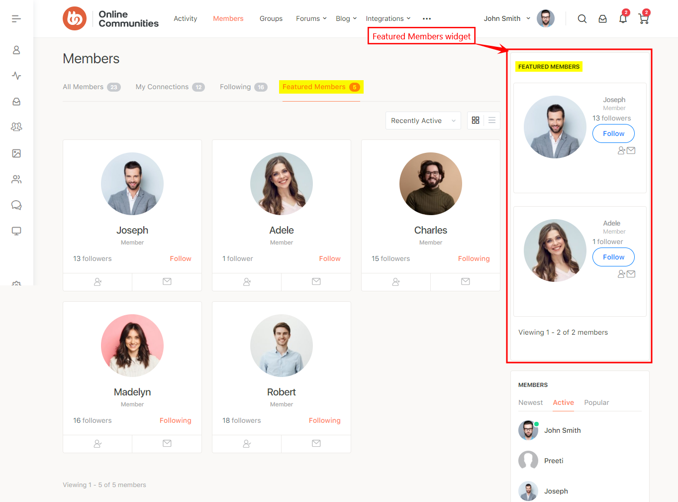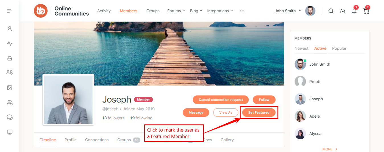 Admins can mark multiple users as featured and display the Featured Members using a shortcode or widget or on the BuddyPress Members’ page.