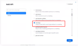 - Click on the Add APIs button under Zoom App SDK