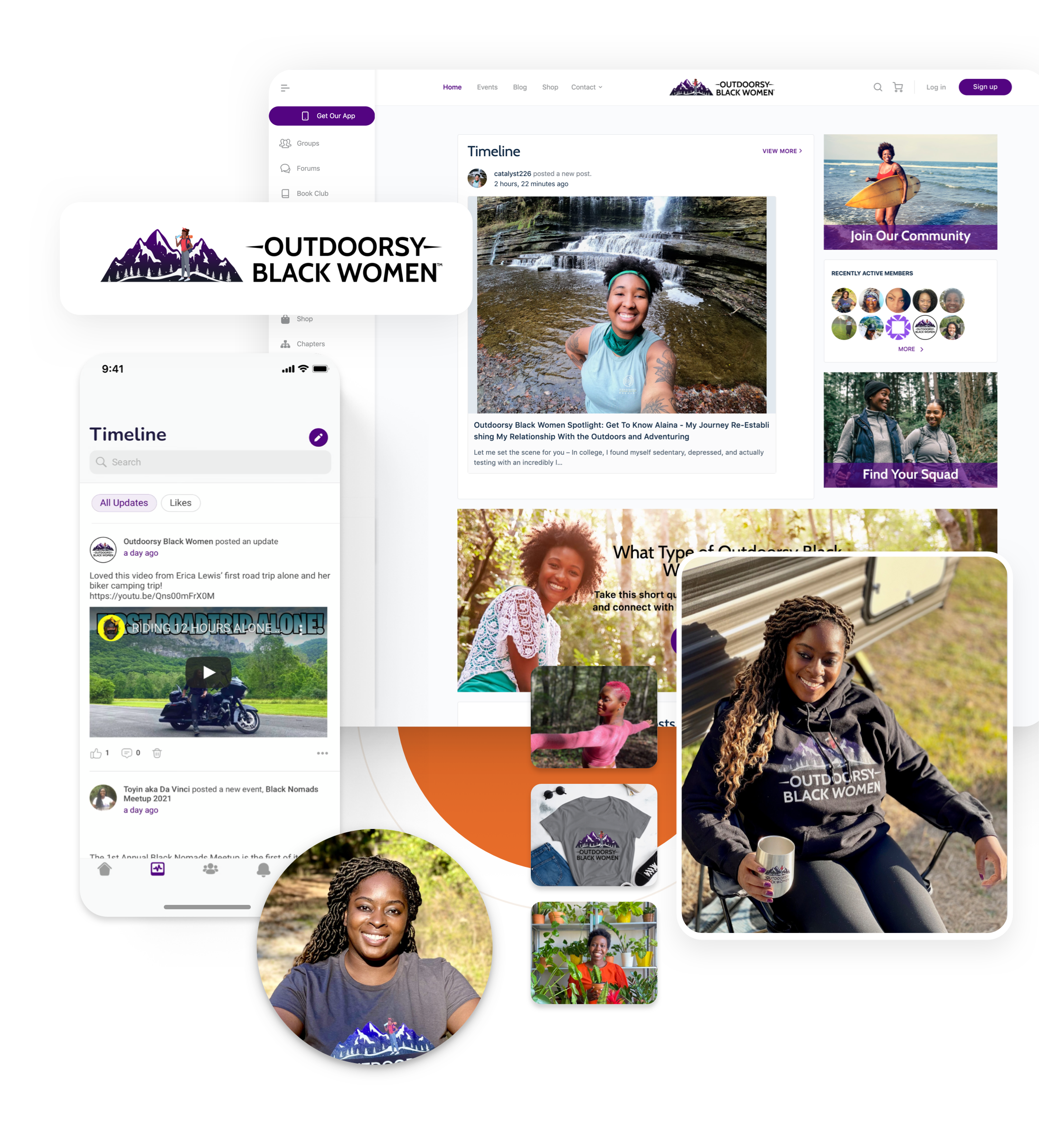 Outdoorsy Black Women by Toyin Ajayi is a social network for black women who love the outdoors. Using BuddyBoss they created a community for women to connect, celebrate and adventure outdoors together. The app features groups, forums, events, books clubs, an eCommerce store, a blog, and more.