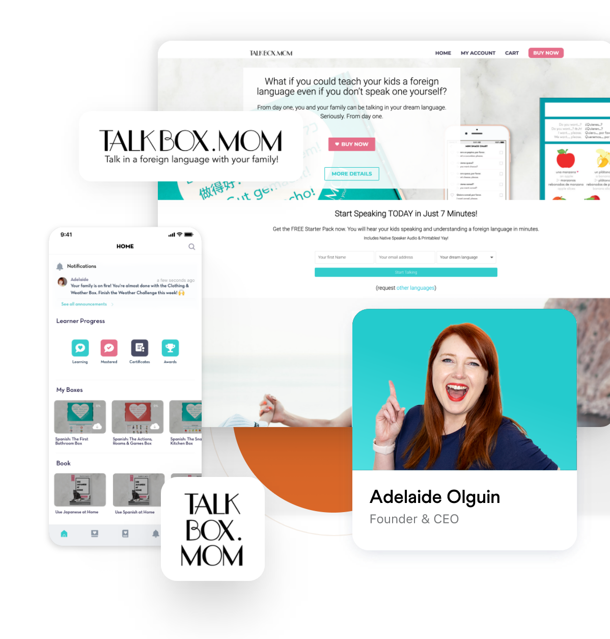 Talkbox.mom helps you start teaching your kids one of 11 foreign languages in as little as 7 minutes. Delivering “Talk Boxes” on subscription to your door with companion content developed by native speakers. Powered by BuddyBoss Web & App.