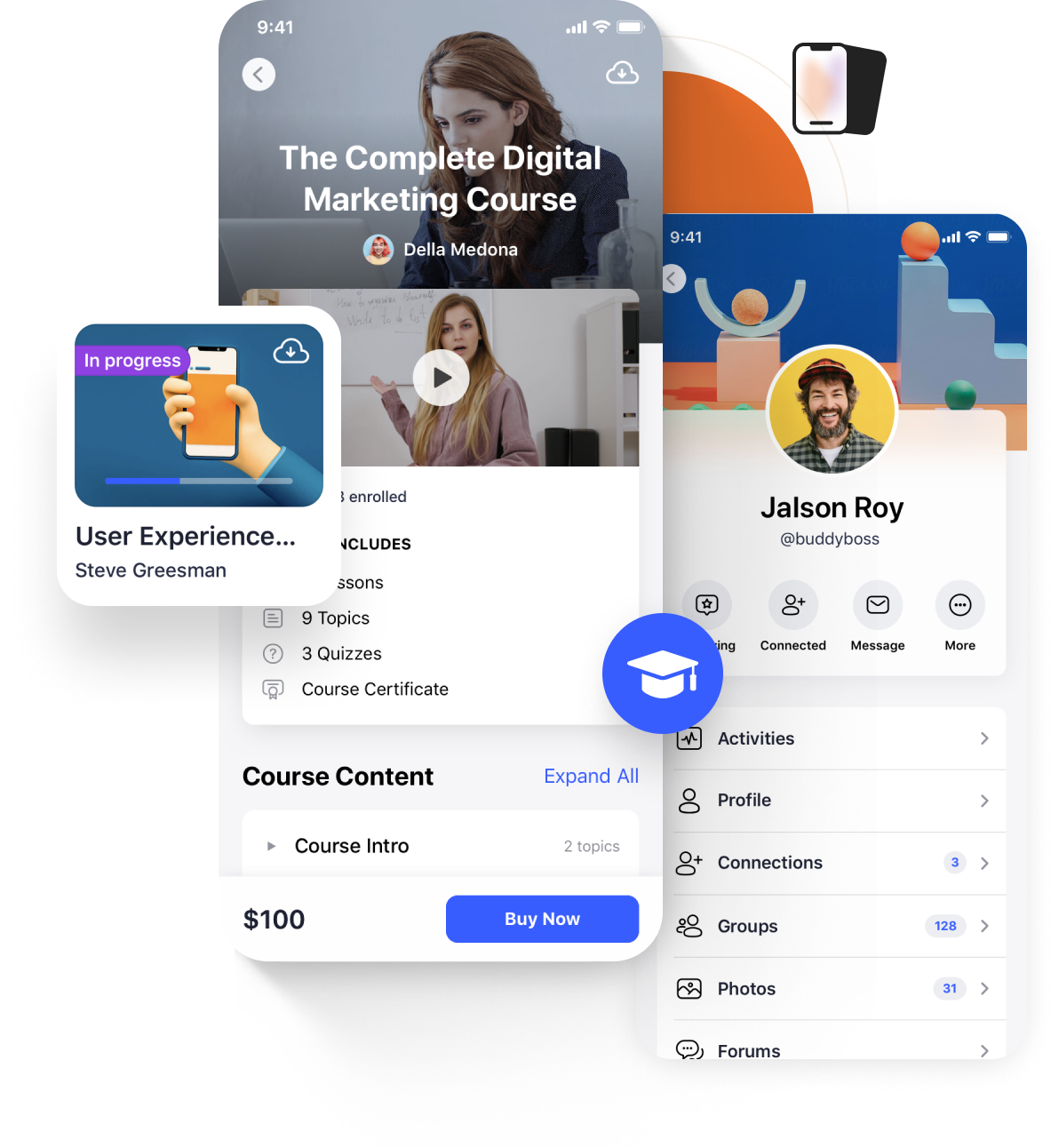 Built with React Native, the same technology used by apps like Facebook, Instagram and many more.Completely customize the experience with your own brand identity. No BuddyBoss branding or links visible anywhere your users can see.All data and activity is synchronized with your WordPress website in real time.Seamlessly collect payments with In-App Purchases.Send personalized and targeted notifications to students' devices.Connect to over 1000+ apps and softwares, thanks to built-in native integrations & web-view functionality.TESTIMONIALS